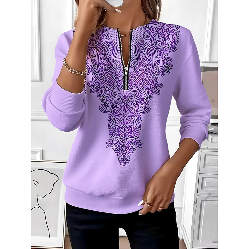 Women's Pullover Sweatshirt Zip Up Sweatshirts Floral Graphic Tribal Fashion Casual Long Sleeve Crew Neck Regular Tops Street Dailywear Zipper Print Black Purple Green Spring Fall Winter