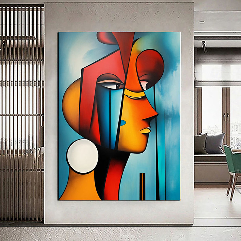 oil painting handmade Lovely Lady Cubism African Canvas Painting Colorful Tribal art Ethnic Interior Decor Contemporary Traditional Art American Woman Cubism Painting on Canvas
