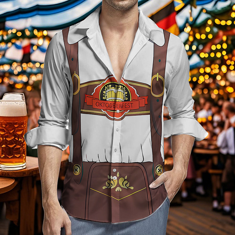 Lederhosen Shirt Oktoberfest Shirt Carnival Oktoberfest Beer Costume Shirt Bavarian German Alpine Wiesn Men's Party Beer Festival Traditional Style Cloth