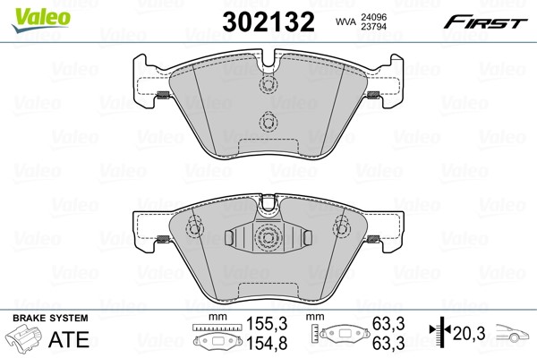 Jarrupalasarja, levyjarru, Etuakseli Valeo 302132 - bmw - OE 34 11 2 288 856, 34 11 2 288 857, 34 11 6 771 972