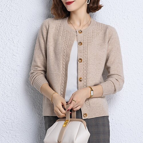 Per donna Cardigan Elegante Vintage Carino Tinta unica A Coste Girocollo Bottoni Lavorato a maglia Manica Lunga Top Regolari Maglia Formale All'aperto Casa Nero Rosso Primavera Autunno