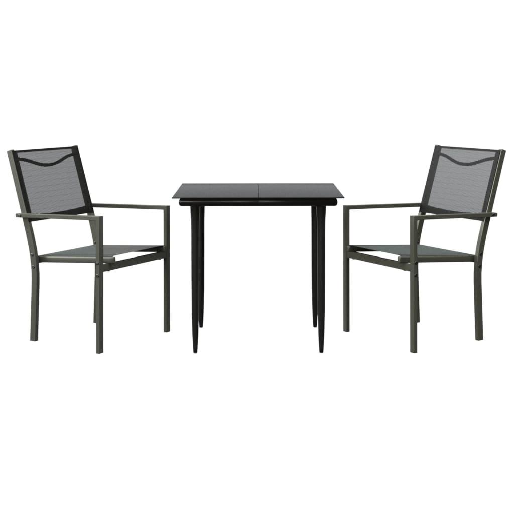 Spisebordssæt til haven 3 dele stål og textilene sort