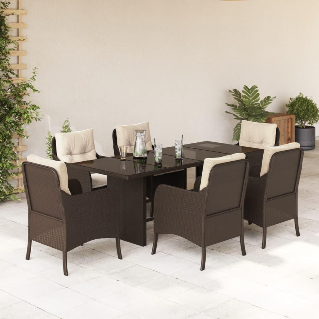 Sofasæt til haven 6 dele med hynder polyrattan brun