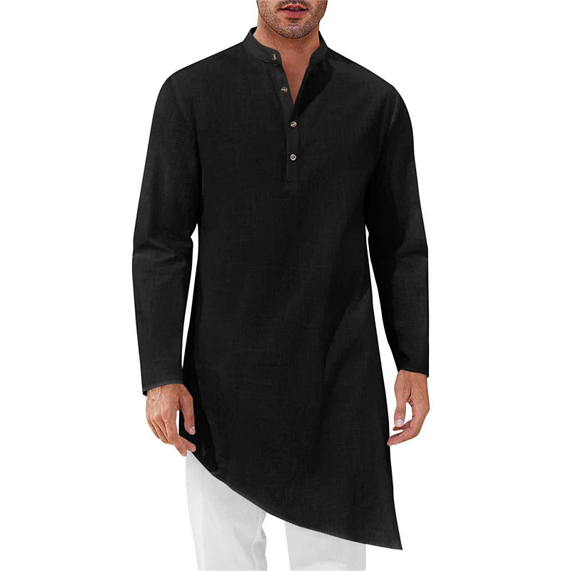 Men's Loungewear Nightgown Nightshirt Plain Stylish Comfort Home Daily Cotton Breathable Stand Collar Long Sleeve Spring Fall Black White
