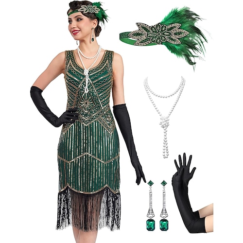 Set Anni Ruggenti Anni 1920 Abito Flapper Abito da cocktail con accessori Il grande Gatsby Ragazza Flapper Paillettes Frangia con nappe Frangia di nappa Con lustrini Costume Per donna Costume