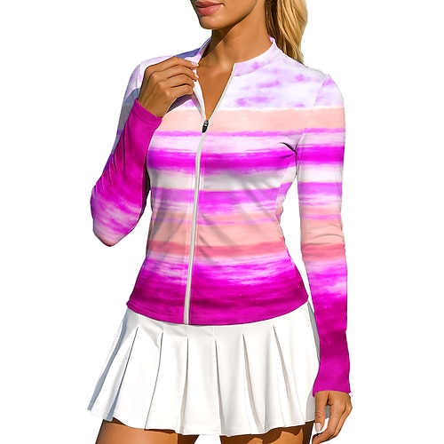 Per donna Geometrico Sfumatura A righe Top Maglietta sportiva Maglia da tennis Manica Lunga Cerniera Floreale UPF50 Resistente ai Raggi UV Alta elasticità Traspirante Pallavolo Tennis Golf Il giro