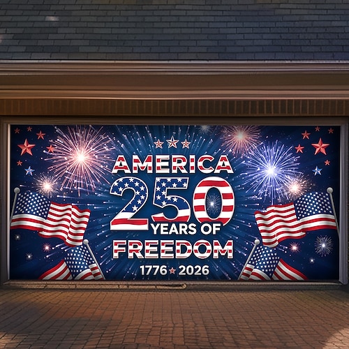 4 luglio 2026 250° Memorial Day Copertura Porta Garage Grande Sfondo Appeso Bandiera Americana Vintage 3D Festa Patriottica Esterno Fondali per Riprese Porta d'Ingresso Decorazione per la Casa