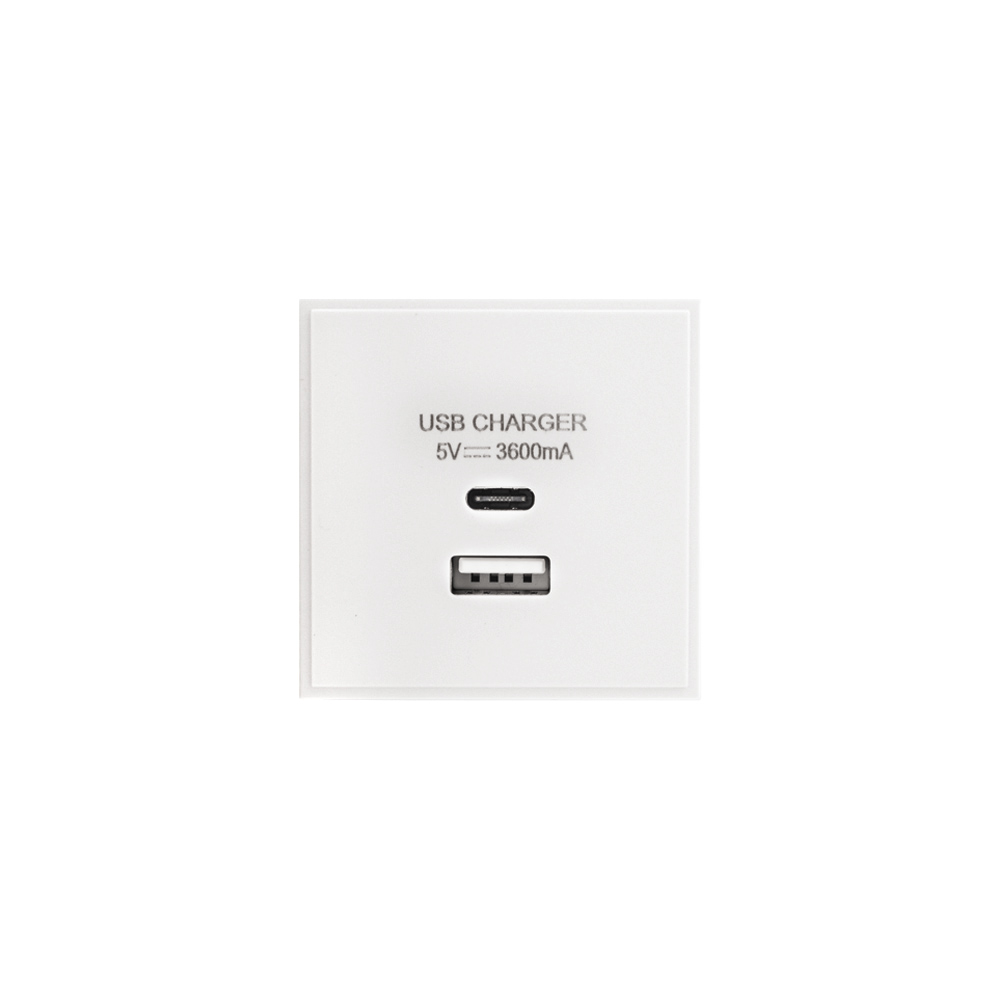 Soho Lighting Silk White Dual USB A+C Charger Euromodule 3.6A 50mmx 50mm