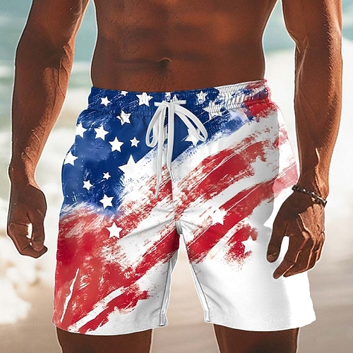Giornata dell'indipendenza Per uomo Bandiera degli Stati Uniti Patriottico 4 luglio Pantaloncini foderati Pantaloncini da bagno 2 in 1 Pantaloncini da mare Misura del girovita medio Ferie Tasche