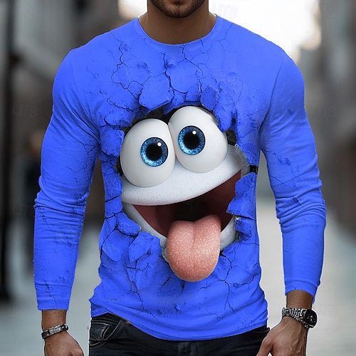 Herren 3D Lustige Emotes T Shirt Langarm T-Shirt 3D-Druck Rundhalsausschnitt Hemd Mode Übertrieben Straße Täglich Hellblau Gelb Blau Sommer Frühling Herbst Bekleidung S M L XL XXL XXXL