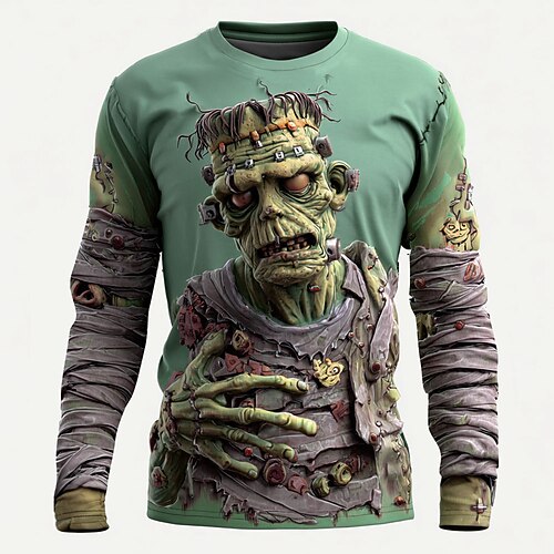 Halloween Herren Zombies 3D T Shirt Langarm T-Shirt 3D-Druck Rundhalsausschnitt Hemd Mode Übertrieben Straße Lässig Täglich Grün 2# Blau Grün Sommer Frühling Herbst Bekleidung S M L XL XXL XXXL