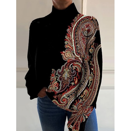 Per donna Felpa Elegante Vacanza Vintage Floreale Grafico Geometrico Dolcevita Stampato Manica Lunga Top Regolari Maglia Quotidiano Ferie Uscire Nero Rosa Autunno