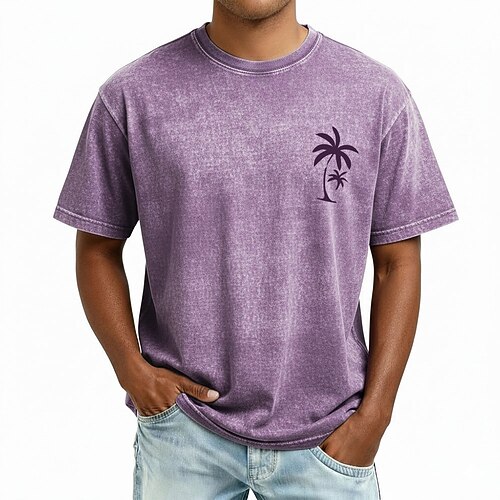 Per uomo Palma di Cocco Maglietta Manica Corta maglietta Lavaggio acido Girocollo Camicia Vintage Retrò Casuale Spiaggia Viaggio Blu Viola Grigio Estate Primavera Abbigliamento M L XL 2XL 3XL