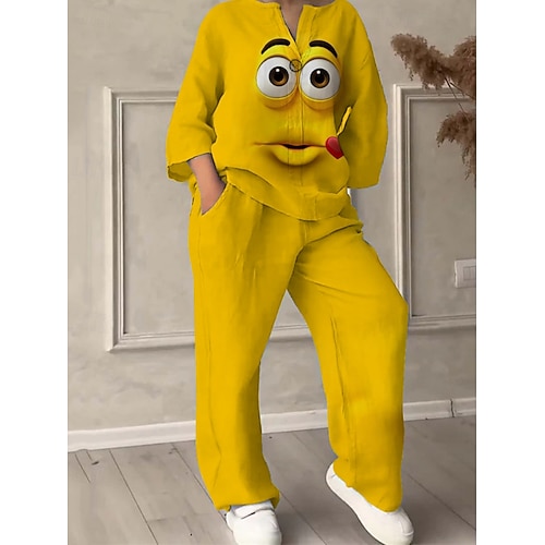 Per donna Attivo Moda Set di Pantaloni Manica Lunga Scollo a V Grafico Stampato Vacanza Quotidiano Ferie Nero Giallo Rosa Estate Vestibilità regolare