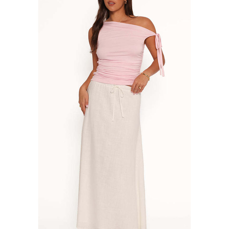 Women's Linen-Inspired Skirts Casual Maxi Mid Rise Plain Drawstring Micro-elastic Vacation Street White Pink Summer Cotton