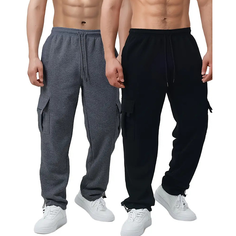 Multi Packs 2pcs Men's blackdark grey Sweatpants Cargo Sweatpants Drawstring Elastic Waist Plain Vacation Daily Wear Polyester Fall