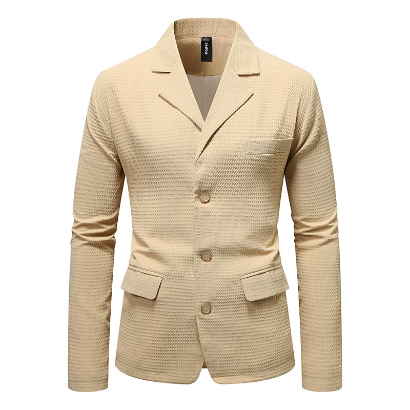 Men's Blazer Jacket Notch Collar Fashion Classic Casual Plaid Solid Colored Waffle Blazer Black Sky Blue Brown Tailored Fit Single Breasted Three-buttons