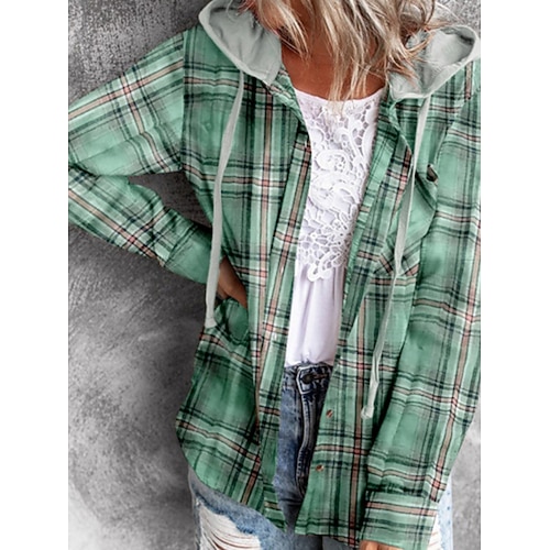 Per donna Giacca Casual Giacca con Cappuccio Confortevole Traspirante Tasca Bottoni Casual Plaid Vacanza Streetwear Casuale Abbigliamento quotidiano Monopetto Regolare Con Cappuccio Vestibilit