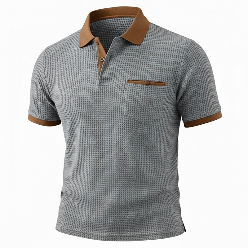Men's Golf Shirt Waffle Knit Polo Shirt Casual Business Ribbed Polo Collar Classic Short Sleeve Fashion Modern Solid Color Buttons Summer Spring All Seasons Slim Fit White Pink Navy Blue Green Beige