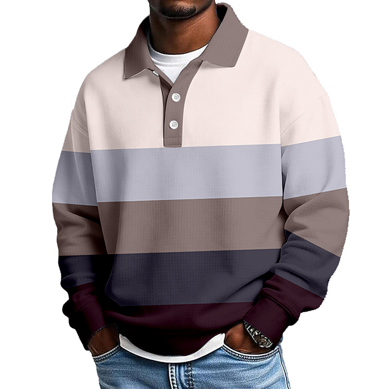 Men's Horizontal Stripes Waffle Polo Shirts Textured Long Sleeve Polo Shirts Lapel Casual Athleisure Daily Wear 3D Print Spring Fall Winter Blue Dark Brown Light Green