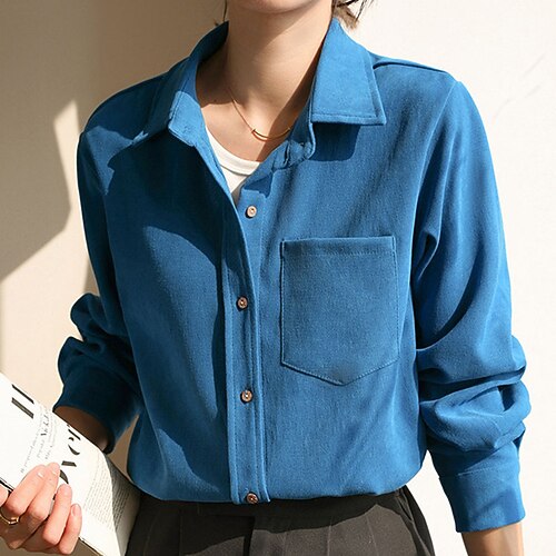 Per donna Camicia Tinta unica Semplice Vintage Quotidiano Elegante Manica Lunga Colletto a Camicia Top Regolari Quotidiano Uscire Tasca Bottoni Bianco Rosso Blu Reale Blu Verde Autunno Inverno
