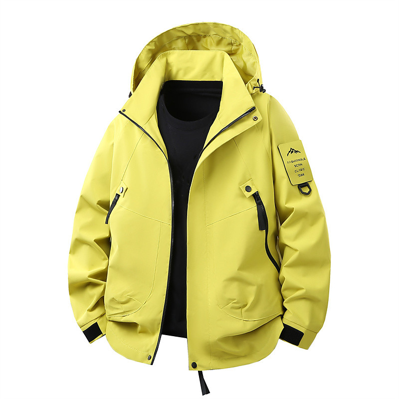 Men's Outdoor Jacket Raincoat Hiking Jacket Daily Hiking Windproof Rainproof Pocket Spring Fall Plain Fashion Classic Hooded Regular Black Yellow Sage Purple Beige Jacket
