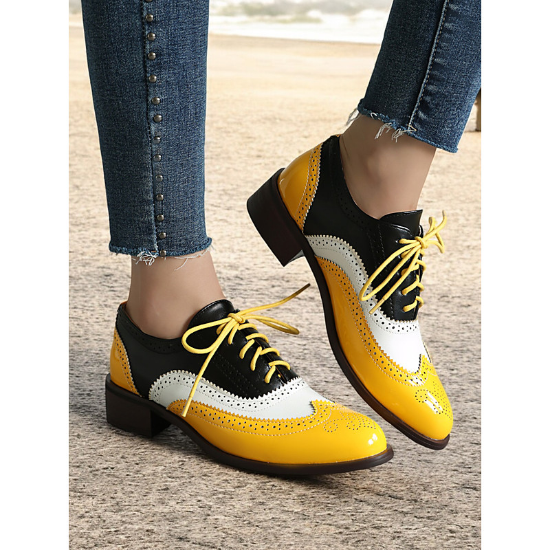 Women's Pink and Black Brogue Shoes – Vintage Inspired Faux Leather Lace-Up Oxford Shoes for Valentine's Day, Retro Style and Casual Outfits