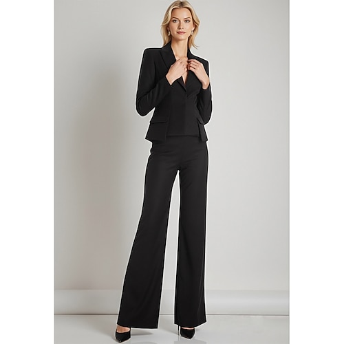 Due Pezzi Tute Lunghezza al pavimento Abito da cerimonia per signora Manica Lunga Colletto a Camicia Elegante Festa Formale Ospite di nozze Taffetà con Fiocco/Fiocchi Tinta unita