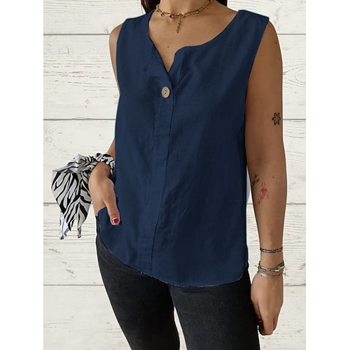 Per donna Blusa Top corto avvolgente Top Eleganti Canotta a canotta Arricciato Bottoni Tinta unica Semplice Elegante Vintage Signore Senza Maniche Scollo a V Top Regolari Quotidiano Lavoro Ferie Blu