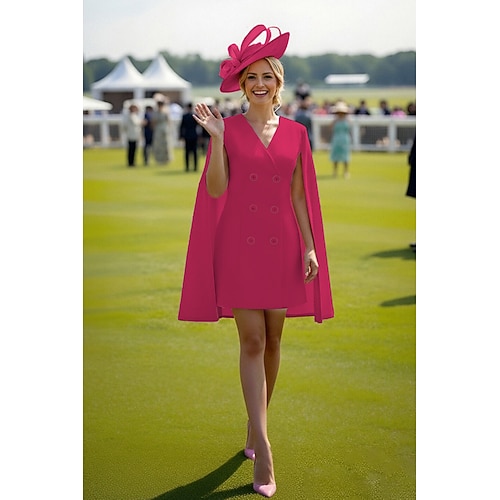 Linea ad A Tubino Colonna Lunghezza al ginocchio Abito Derby Abito da cerimonia per signora Manica Corta Scollo a V Elegante Vintage Derby del Kentucky Tessuto Elasticizzato con Bottoni Tinta unita