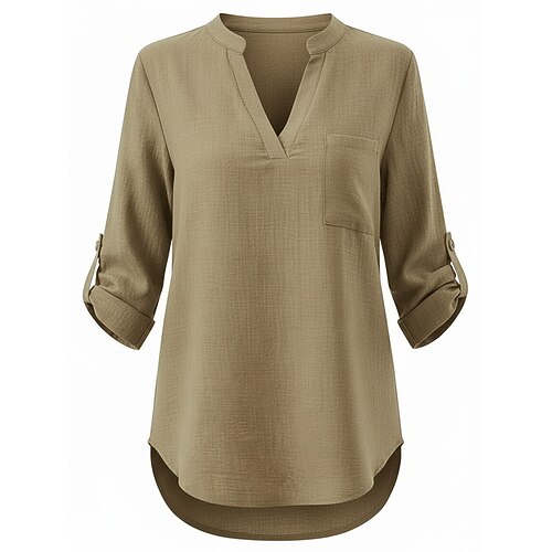 Per donna Top Eleganti Tasca Tinta unica Semplice Elegante Signore Moderno Manica Lunga Scollo a V Top Regolari Quotidiano Lavoro Uscire Nero Bianco Rosa Verde Cachi Autunno Inverno