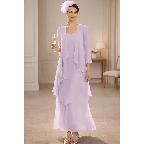 Tre Pezzi Lunghezza al pavimento Abito da cerimonia per signora Senza Maniche Scollo a Barca Elegante Taglie Forti Ospite di nozze Chiffon Con Stola con Tinta unita