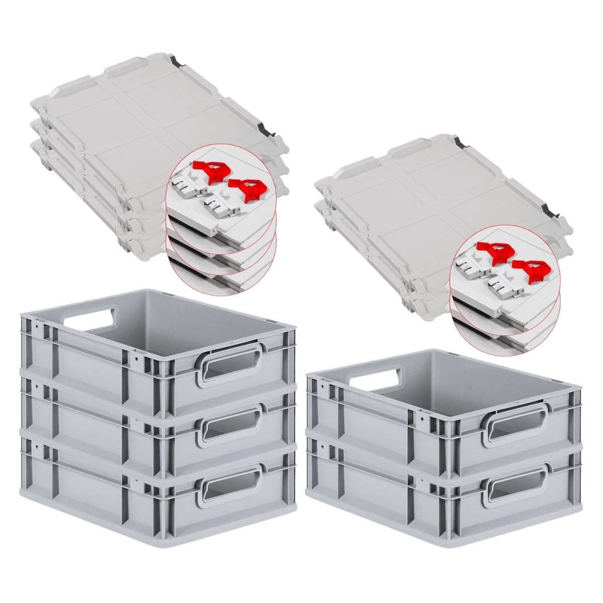 PROREGAL 5x Eurobox NextGen Grip mit Scharnierdeckel & roten Verschlüssen | HxBxT 12x30x40cm | 11 Liter | Griffe offen | Glatter Boden