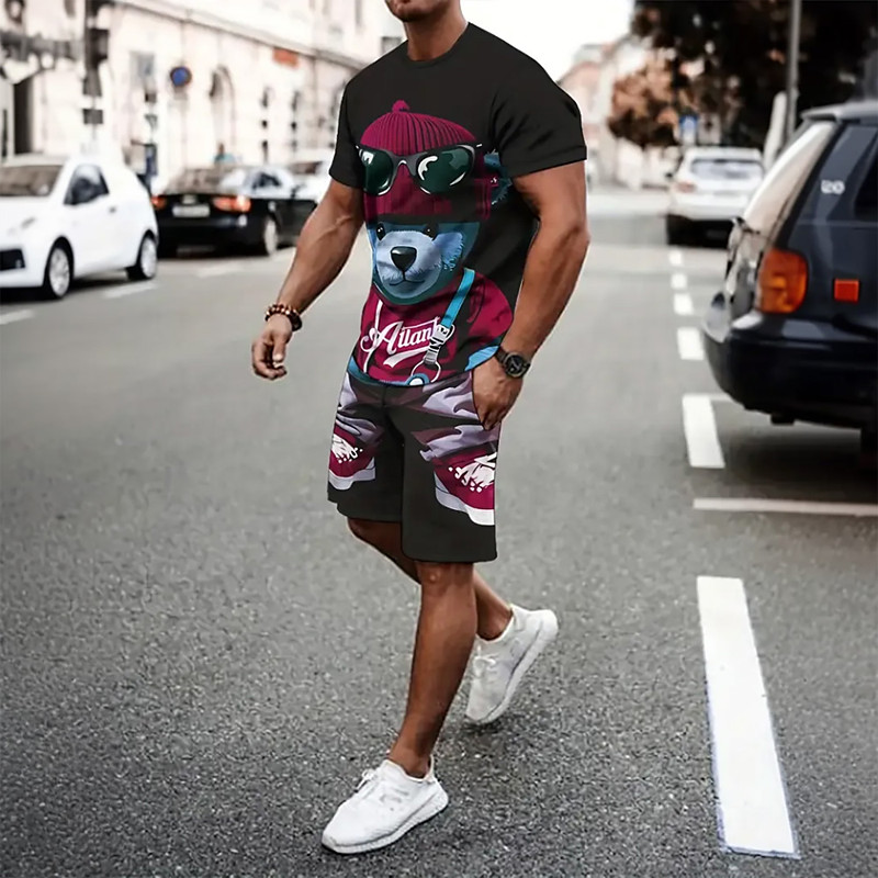 Men's Cartoon Character 2pcs Tees sets Summer Tops Short Sleeve Short Pants Crew Neck Sport Casual Trendy Sports Outdoor Casual Daily 3D Print Summer Robin's Egg Blue Black Green