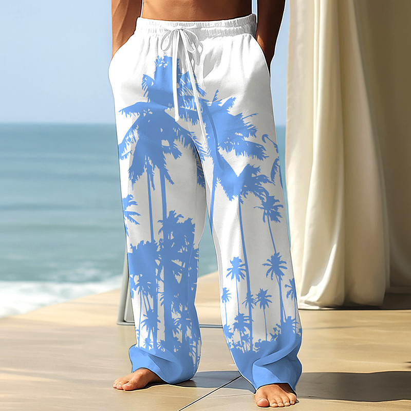 Men's Coconut Tree Tropical Plants Trousers Baggy Pants Casual Pants Mid Waist Hawaiian Vacation Holiday Beach Wear Elastic Waist Wide Leg Drawstring Summer Spring 3D Print Black Blue Green
