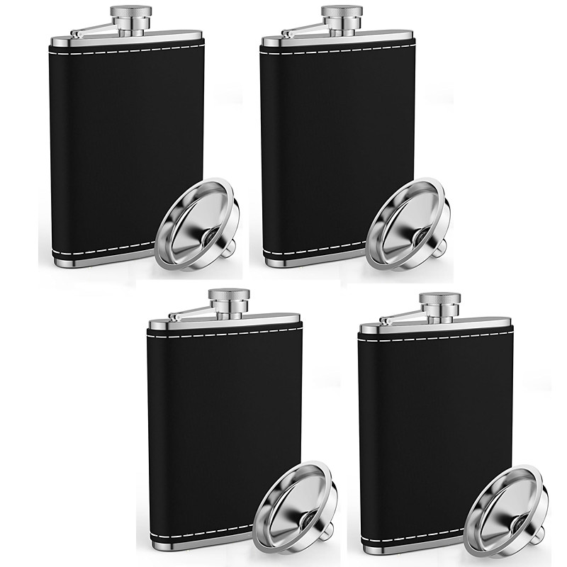 8 oz Leather Hip Flasks for Liquor for Men Leak Proof Stainless Steel Drinking Flasks with Funnel Soft Wrap Whiskey Vessels for Wedding Bridesmaid Men Gifts