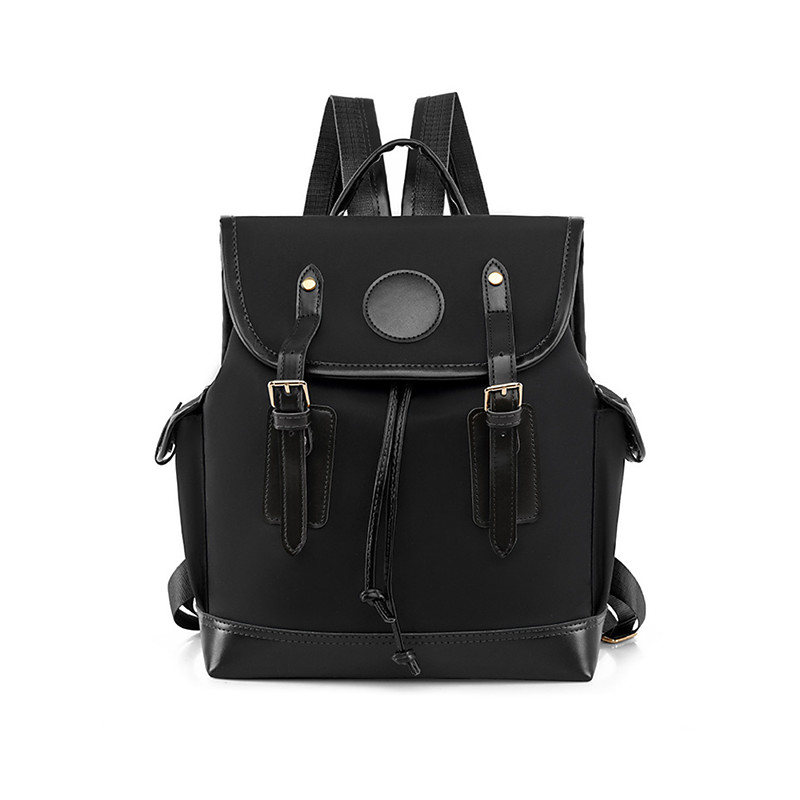 Women's Vintage Faux Leather Trim Backpack - Waterproof Canvas Preppy School Bag with Drawstring Closure for Teenage Girls, Students and Daily Use