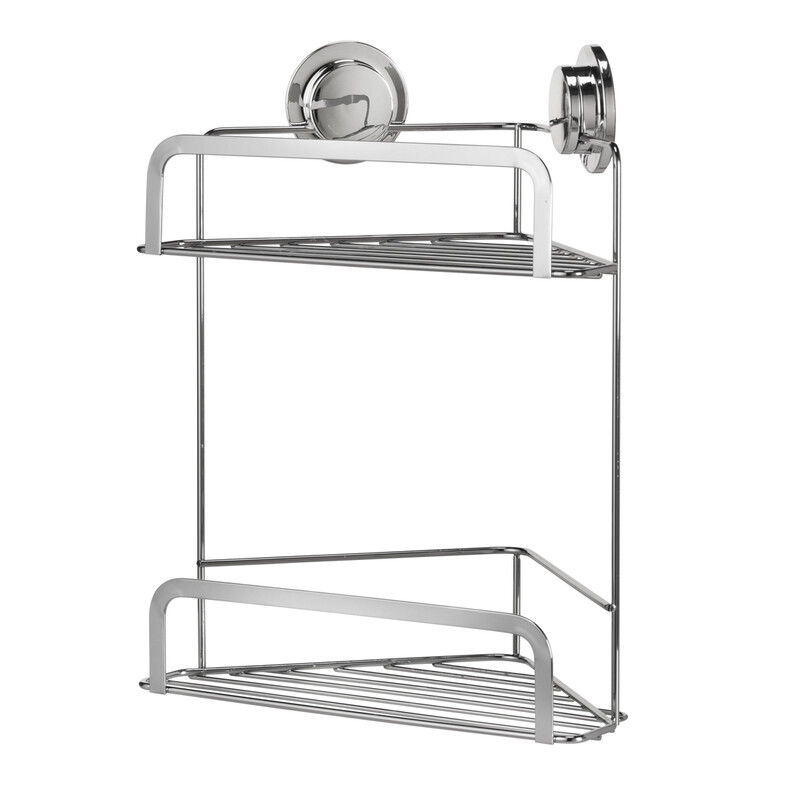 Croydex Stick 'n' Lock 2 Tier Corner Shower Caddy - Chrome