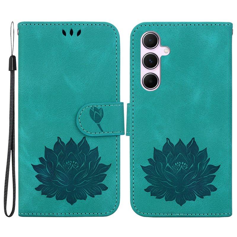 Samsung Galaxy A55 5G Plånboksfodral Ställ Lotusmönster Konstläder - Grön