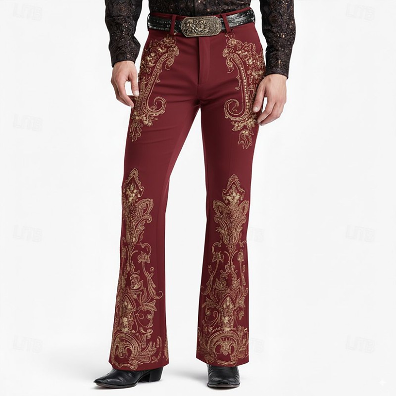 Men's Paisley Floral Print Ethnic Disco Pants 60s 70s Bell Bottoms Mid Waist Western Vintage Retro Outdoor Vacation Casual Side Pockets Flared Leg Pants Trousers Spring Fall 3D Print Red Blue Purple
