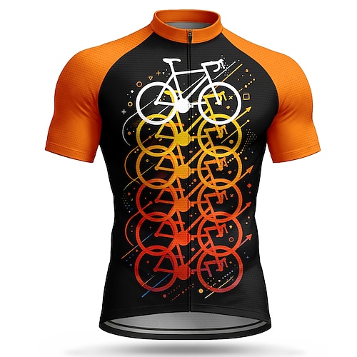 Da uomo Maglia da Ciclismo Geometrico Manica Corta Bicicletta Maglia Top con 3 tasche posteriori Resistente ai Raggi UV Asciugatura Rapida Con tasche Cerniera Frontale Gli sport Giallo Arancione