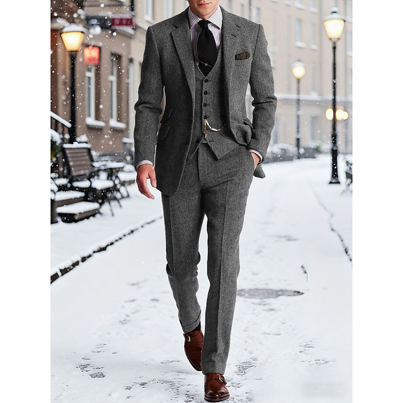 Men's BlazerVestDress Pants Blazer Vest Set Business Cocktail Party Wedding Party 3 Piece Fashion Casual Spring Fall Polyester Plain Pocket Buttons Comfortable Single Breasted Blazer Dark Gray