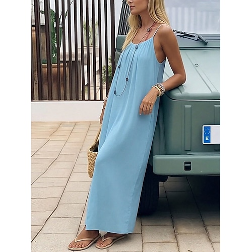 Per donna Abito maxi Abito a trapezio Abito Estivo Casual Quotidiano Vestibilità comoda Semplice Senza Maniche Spalline sottili Blu Nero Bianco Viola Estate