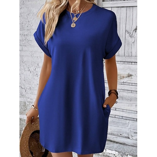 Per donna Mini Abito Abito Bianco Vestito Casual Moda Moderno All'aperto Vacanza Uscire Vestibilità regolare Vestibilità comoda Semplice Manica Corta Girocollo Blu Nero Bianco Rosso Estate Primavera