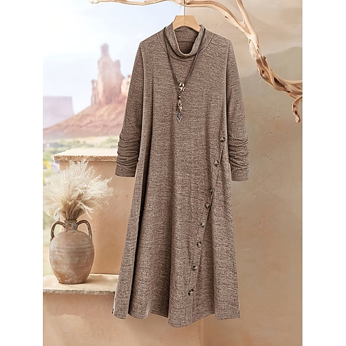 Per donna Abito Midi Abito nero Vestito Casual Elegante Moda Moderno All'aperto Vacanza Uscire Vestibilità comoda Semplice Manica Lunga Collo alla coreana Nero Cachi Primavera Autunno