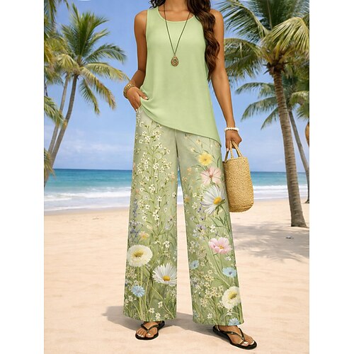 Per donna Canotta Set di Pantaloni Senza Maniche Girocollo Floreale Grafico Geometrico Stampato Moda Quotidiano Casuale Quotidiano Spiaggia Blu Giallo Rosa Estate Vestibilità comoda