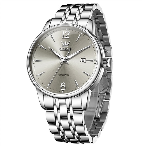 olevs orologio meccanico da uomo in acciaio inossidabile impermeabile doppio calendario orologi meccanici automatici di lusso da lavoro 7075