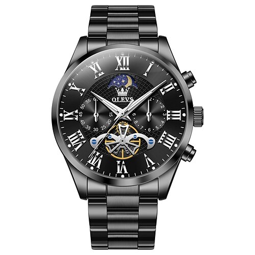 il nuovo orologio da uomo olevs business con fasi lunari luminose e display del calendario è un orologio da polso sportivo impermeabile casual multifunzionale scheletrato meccanico completamente