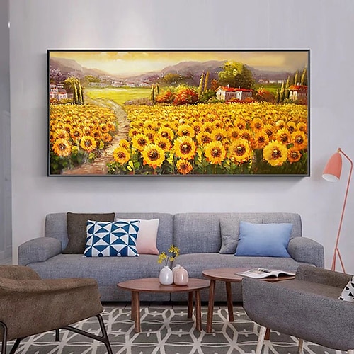 Mintura dipinti a olio su tela con paesaggio di girasoli testurizzati fatti a mano, decorazione da parete, quadro astratto moderno per la decorazione della casa, dipinto arrotolato senza cornice e non