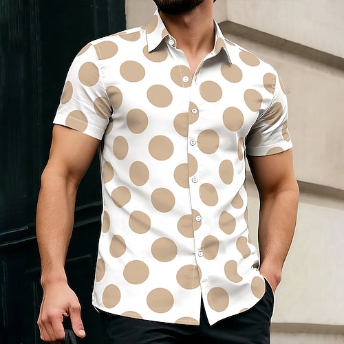 Per uomo Geometrico A pois Camicia Camicia casual Camicia con Bottoni Manica Corta Moda Casual Quotidiano Vacanza Estate Primavera Collo ripiegato Stampa 3D camicie con colletto Bianco - nero